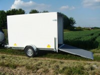 Geschlossener Motorradanhänger / Kofferanhänger mit durchgehender Auffahrrampe.