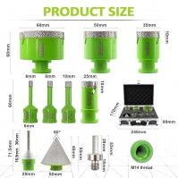 Diamant Fliesenbohrer Set 6/8/20/25/35/50/68 mm 10-teilig Diamantlochsäge mit 6-25 mm und 50 mm Fing