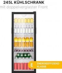 Kühlschrank Getränkekühlschrank Flaschenkühlschrank mit Glastür Kühlschrank 245 L Nutzinhalt und 5 G