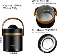 Isolierbehälter Thermobehälter Speisenbehälter Wärmebehälter 1,3L Edelstahl warme Speisen Mahlzeit