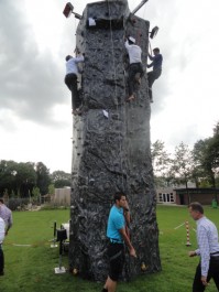Unser mobilen Kletterfelsen gebrauchen wir für : Teambuilding, Coaching und Ausbildung, Kommunikation, Vertrauen haben in einander, grenze übersteigen.