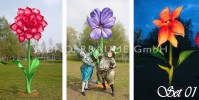 10 vollplastische Riesenblumen; bis zu einer Höhe von 4 Metern; wunderschön gearbeitet; Die Blumen sind höhenverstellbar, können feststehend montiert oder in einer rollbaren Variante gemietet werden. Diese außergewöhnlichen und auffälligen Blumen sind auch für einen outdoor-Einsatz im Winter geeignet.Vermietet werden 3 unterschiedliche Setvarianten:
