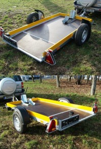 Absenkbarer 1er Motorradanhänger gebremst 1000 kg – 100 km/h 2500 x 1270 x 100 Nutzlast ca. 750 kg