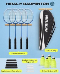 4 Badmintonschläger Federballschläger aus Stahl,