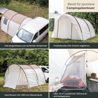 Busvorzelt Buszelt Bullizelt Minivanzelt Familienzelt Urlaub Campingzelt Winterzelt Camper Tramp freistehend mit Schlafkabine für 2-4 Personen Stehhöhe 2,1 m Sonnendach 3000 mm Wassersäule Zelt für Auto Bus Van Minivan Bulli