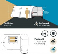 für 2-4 Personen Stehhöhe 2,1 m Sonnendach