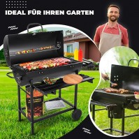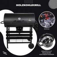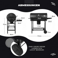 Holzkohlegrill mit Deckel, Ablagen + Rollen