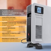 Mit 2300 W und 3 Heizstufen sorgt der Konvektor für schnelle, gleichmäßige Wärme