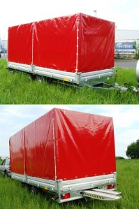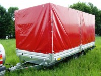 Geschlossener Autotransporter mit Plane extra breit / Lichtdach.
