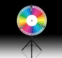 Die Standsicherheit erhält das Glücksrad durch das mitgelieferten 3-Bein-Stativ.