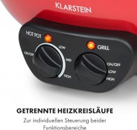 Hot Pot Grillplatte Volumen: 5 Liter Hot Pot: 1350 Watt / 38 cm Durchmesser Grillplatte: 600 Watt / 22 cm Durchmesser Aluminium-Heizelement separat regelbar