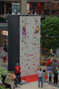 eine 6,00 m hohe, 2,50 m breite und 5,00 tiefe Kletterwand Attraktion für Jung und Älter