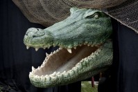Halbes Krokodil, das Kopf, Maul und Augen bewegen kann. Trotzdem es nur ein halbes Krokodil ist, ist es stattliche 3 m lang und wird von hinten bewegt. Ideal als erschrecker Aktion, aber auch nur als Deko buchbar. Viele weitere Piiratenfestdekorationen im Fundus. Gerne erstellen wir Ihnen ein komplett Angebot mit unseren Attraktionen und Animationen. Die passende Ausstattung zu verschiedensten Themen finden sie auf unserer Homepage unter: www.fxdeco.de. Bundesweite Lieferung.