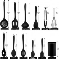 Küchenbesteck Küchenhelfer-Set 12-teilig Silikon-Kochutensilien Kochgeschirr hitzebeständiges Kochbesteck-Set mit Utensilienhalter antihaftbeschichtet spülmaschinenfest