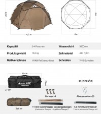 Kuppelzelt 4 Personen Campingzelt Familiencamping Familienzelt Winterzelt wasserdicht 3000 mm 4 Jahr