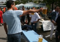 Wer hat die Nerven – wer hat die Muskeln? Halten Sie den mit Bier gefüllten Maßkrug möglichst lange mit Ihrem Arm gestreckt. Wer zuerst absetzt, verliert. Ein Muss für jede Oktoberfest Gaudi. Unser geschulter Mitarbeiter sorgt für einen reibungslosen Ablauf und fungiert gleichzeitig als Schiedsrichter.