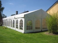 Partyzelte Spannweite 3, 4, 6, 8, 10 m die Länge ist variabel in 3 m Raster erweiterbar.