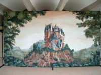 Ideal für Märchen oder Mittelalterveranstaltungen als Bühnenhintergrund. 3x5m geöst.