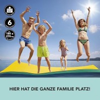 Schwimmmatte Wassermatte Strandmatte XXL 270 x 180 cm ohne aufblasen für auf oder an dem Wasser | belastbar bis 300 kg inkl. Seil zur Befestigung | Platz für bis zu 6 Personen