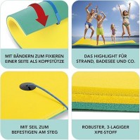 Schwimmmatte Wassermatte Strandmatte XXL 270 x 180 cm ohne aufblasen für auf oder an dem Wasser | belastbar bis 300 kg inkl. Seil zur Befestigung | Platz fü
