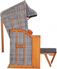 Vollholz-Front, Edelstahl-Beschläge und wetterbeständiges Polyrattan