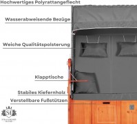 Genießen Sie gepolsterte Sitz- und Liegeflächen, ausziehbare Fußstützen