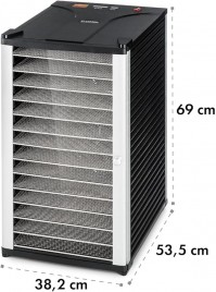 Trocknungsgerät Dörrgerät für Lebensmittel 1,8 m² Obst-/Fleisch- und Früchte-Trockner 1,8 m² Trockenfläche und 14 Etagen 1000 Watt Leistung stufenlos bis 70 °C einstellbar Timer stabiles Gehäuse schwarz