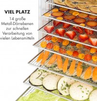 Trocknungsgerät Dörrgerät Lebensmittel 1,8 m² Obst-/Fleisch- und Früchte-Trockner 1,8 m² Trockenfläche und 14 Etagen 1000 Watt Leistung stufenlos bis 70°C