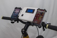 Vormontierte Handyhalterungen mit 3-fach-Ladekabel (Micro-USB, USB-C, Lightning).