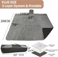 Wasserdichte Outdoor-Decke 203 x 150 cm mit Sherpa-Futter winddicht dreilagig warm bequem faltbar für Camping Strand Picknick Gras Konzerte Auto Hund