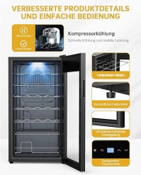 Weinkühlschrank Weinflaschenkühlschrank Weinschrank Kühlschrank mit Glastüre 28 Flaschen 82 L freistehend schwarz Energieklasse G