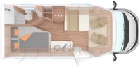Kompakter und wendiger Teilintegrierter für 2-Personen. Das bequeme Heckbett lädt zum entspannten träumen in der schönsten Zeit des Jahres ein. Der für die Abmessungen großzügige Innenraum bietet viel Stauraum für 2-Personen. Die Fahrräder finden auf dem Heckträger Platz. Selbstverständlich inkl. Markise, Fahrradträger, CD/Mp3/USB Radio, Heckbett ca, 201 x 133/103 cm, Naßzelle inkl. separater Dusche, großer Kühlschrank, Kochstelle, Gasheizung Truma Combi 4, Fahrerhausklimaanlage, Doppelairbag, ABS, ESP mit Hill-Holder,140PS Dieselmotor mit Euro 6 d-Temp