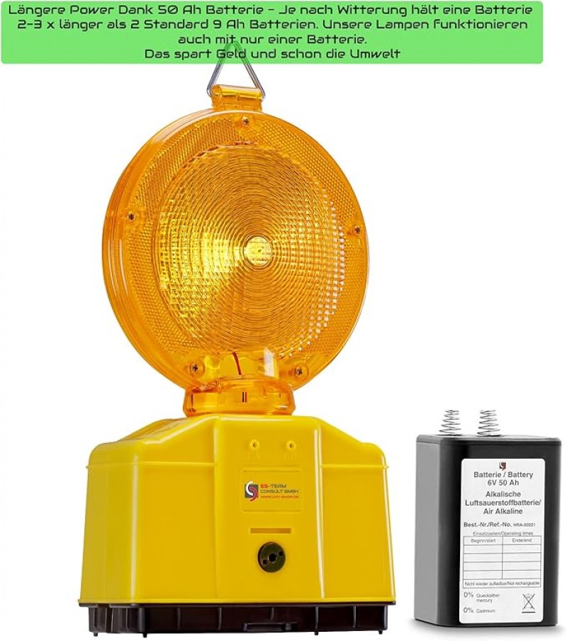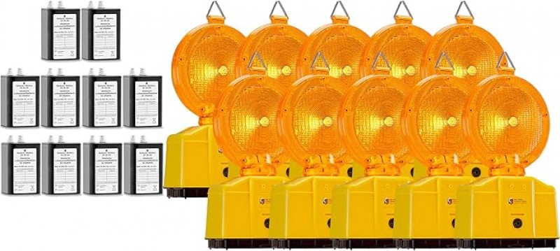 Baustellenleuchten Warnleuchten 10 Stück mit Dämmerungsfunktion automatische Tag- Nachtschaltung LED inkl. Lampenschlüssel + 50 Ah Batterien
