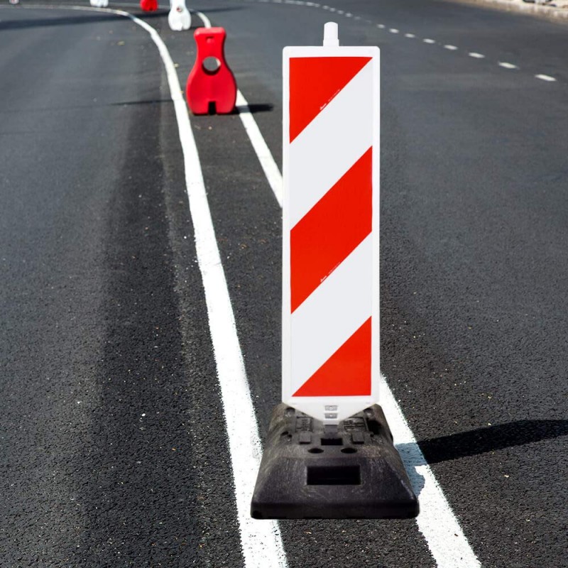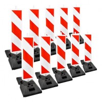bestehend aus 10 rot/weißen Leitbaken mit passenden, schwarzen Fußplatten,