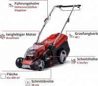 Akku-Rasenmäher Schnittbreite 36 cm Stromquelle Batteriebetrieb AKKU Auffangbehälter 40 l