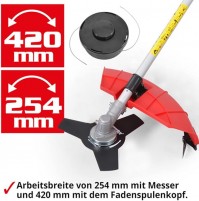 Diese können Sie wahlweise mit dem Doppelfaden-Spulenkopf oder dem Dreizahnmesser kürzen.