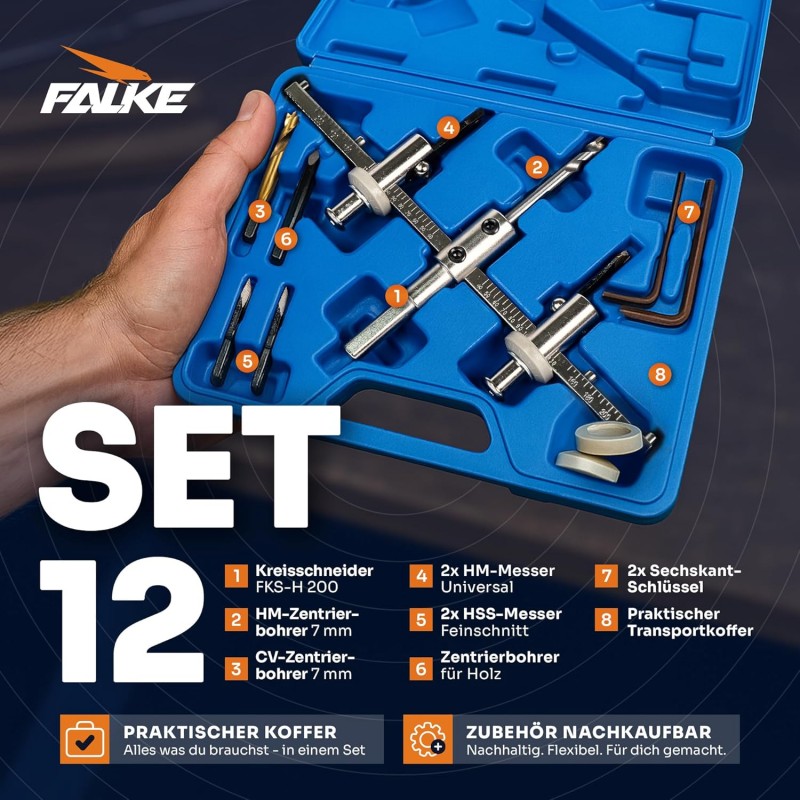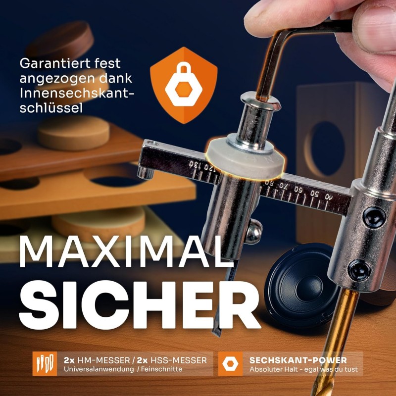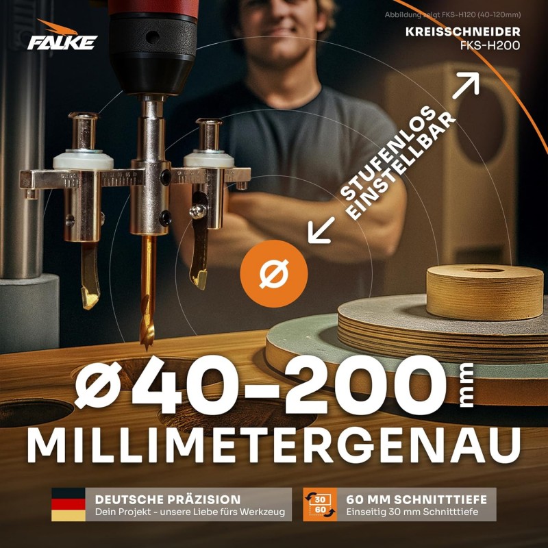 Kreisschneider Holzkreisschneider Lochsäge Werkzeug 40 – 200 mm Holzbearbeitung Holz Kunststoff Gipskarton Durchmesser stufenlos einstellbar