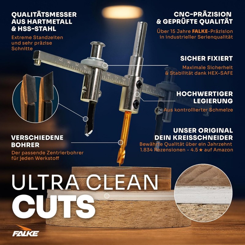 Der Kreisschneider gewährleistet saubere Schnitte bei allen Span- und Tischlerplatten,