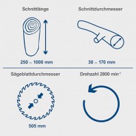 Sägeblatt-Ø 505 mm Schnitt-Ø 170 mm