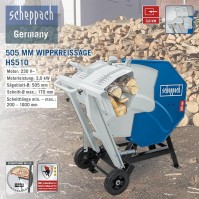 Wippkreissäge Brennholzsäge HS510 Wippsäge Kreissäge 230 V 3000 W Leistung Sägeblatt-Ø 505 mm Schnitt-Ø 170 mm Schnittlänge bis 1000 mm Normalstrom 230 V