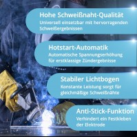 reduziert Elektrodenkleben und wärmt den Nahtanfang schneller auf.