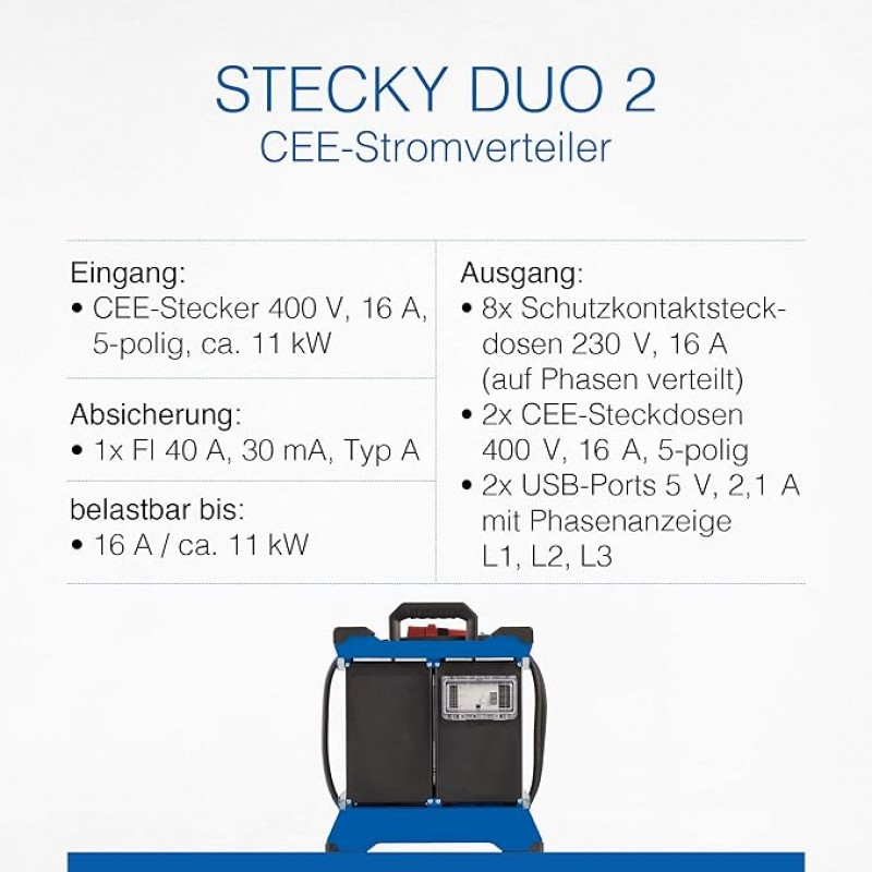 Stromverteiler Baustromverteiler Stromstation tragbar 2 CEE Stecker 400V/16A/5polig – 8 x Schuko 2 x CEE 16A 2 x USB-Ports