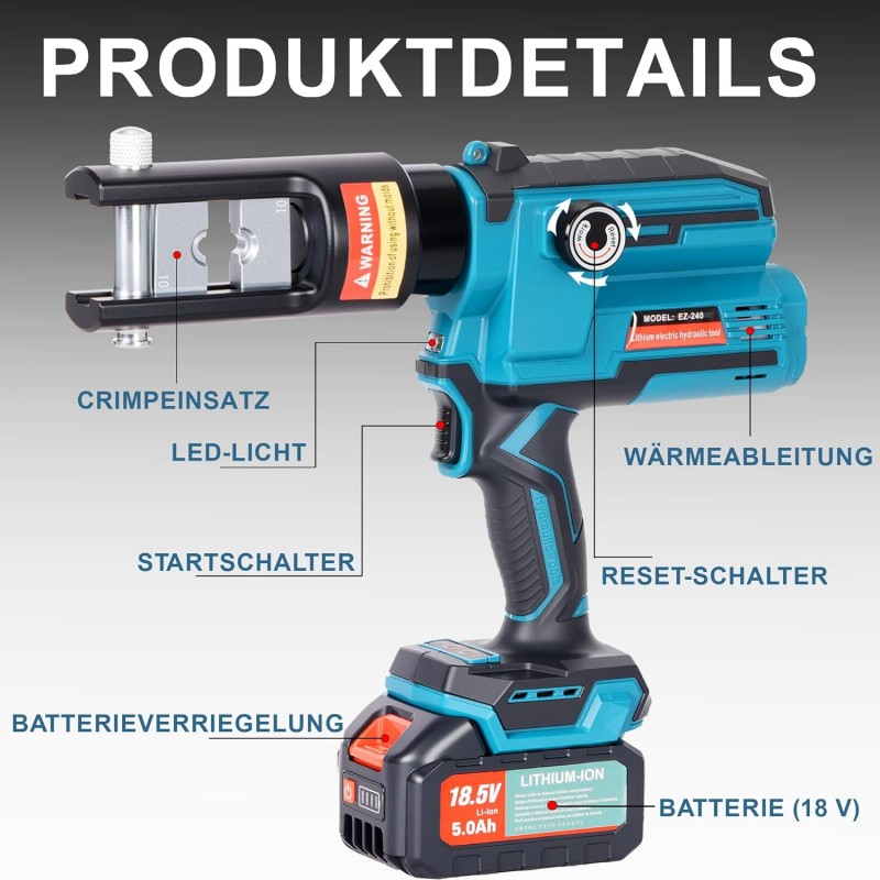 Crimpzange Kabelschuhpresse Crimpmaschine elektrisch wiederaufladbar hydraulisch tragbar 18V Lithium