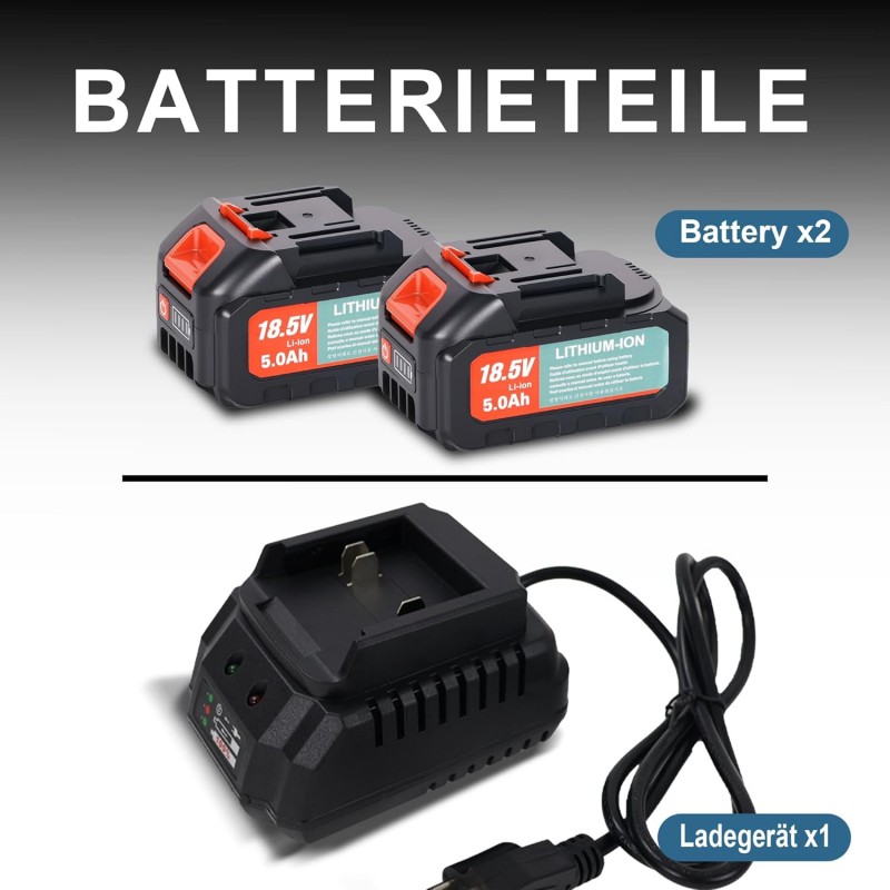 Zwei 18V Lithium-Ionen-Akkus sind im Lieferumfang enthalten