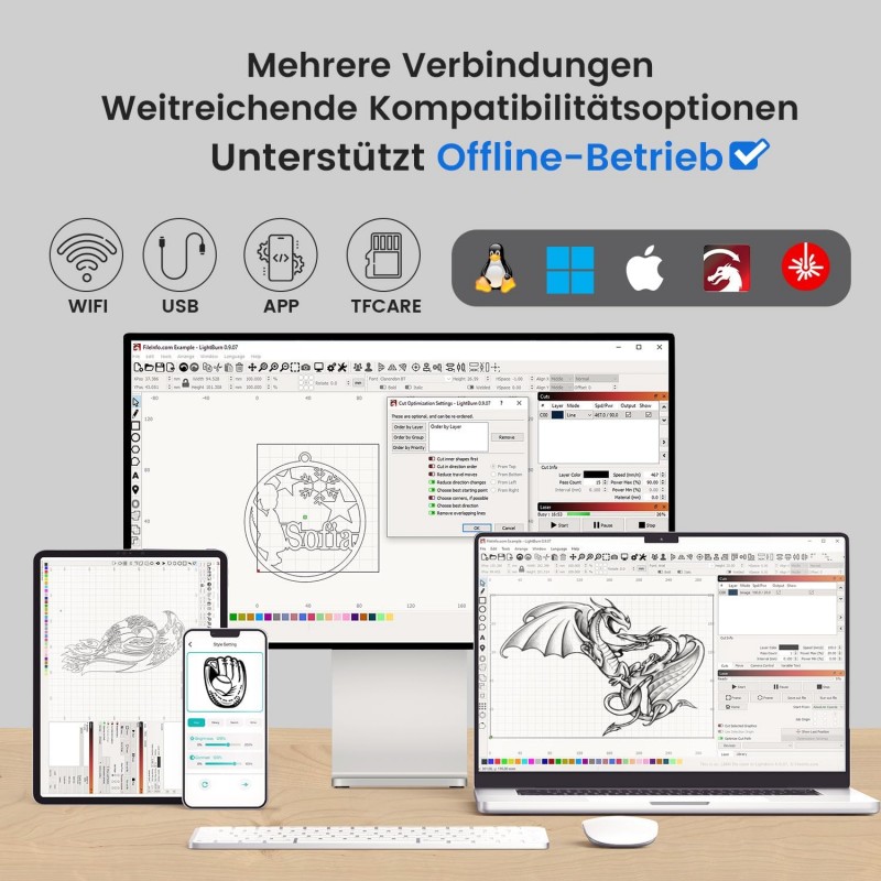 Kompatibel mit professioneller Software wie Laser GRBL und Light Burn.