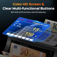 Geldzählmaschine Wertzählung Euro UV/MG/IR/MT/DD Falschgelderkennung Nominalsortierung und Mischzählung Additions- und Batch-Modus 3 Anzeigen 1000 Banknoten/Min.