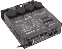 Der Botex DDP-405 ist ein kleiner und kompakter Dimmer mit 4 Kanälen und DMX Steuerung. Durch die geringe Größe lässt er sich problemlos an eine T-Bar schrauben.