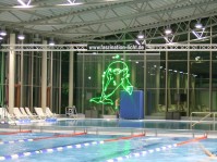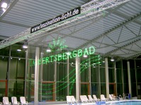 Lasershow als Raumshow oder auch als Grafikshow auf Wasserleinwand. Schwimmbäder & Thermen eignen sich besonders gut, da für die Wasserleinwand bereits ein Wasserbecken vorhanden ist.