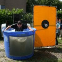 Treffen Sie die schwarze Scheibe um jemanden ins Wasser fallen zu lassen. Eine Person sitzt auf einer Bank über einem Wasserbehälter, die Zuschauer werfen auf eine Zielscheibe, bei einem Treffer fällt der Lockvogel aus dem Publikum ins Wasser, eine Riesengaudi. Unser geschulter Mitarbeiter sorgt für einen reibungslosen Ablauf und animiert Ihre Gäste.