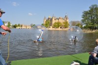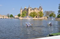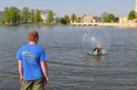 Ein absoluter Hit ist der Wasserlaufball. Komplett in dem Ball eingeschlossen kann jeder „über das Wasser gehen“. 100 Prozent wasserdicht verpackt, in 3000 l Luft eingeschlossen sowie an einer bis zu 30 m langen Leine gesichert, erfährt man eine „Wasserwanderung“ mal ganz anders.